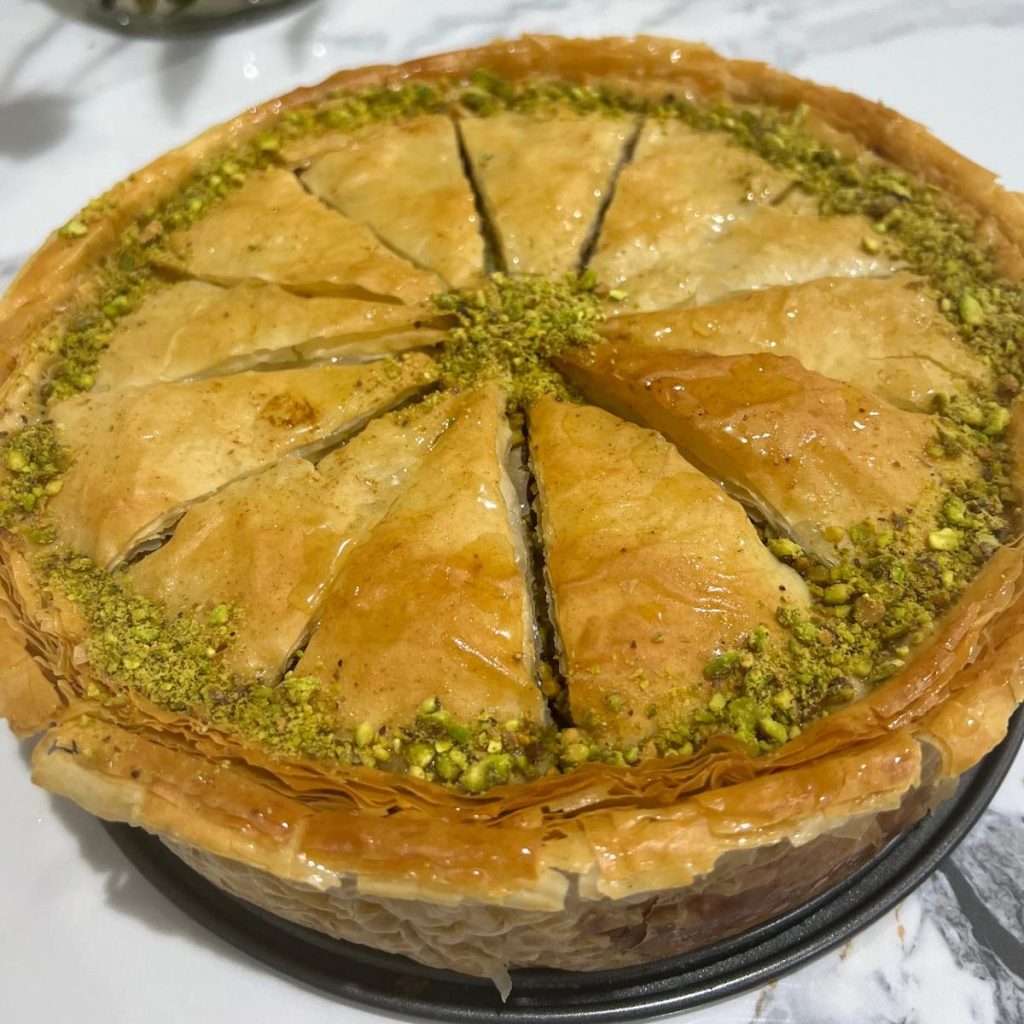 Baklava Cheesecake (12 slices) with pistachio for $50