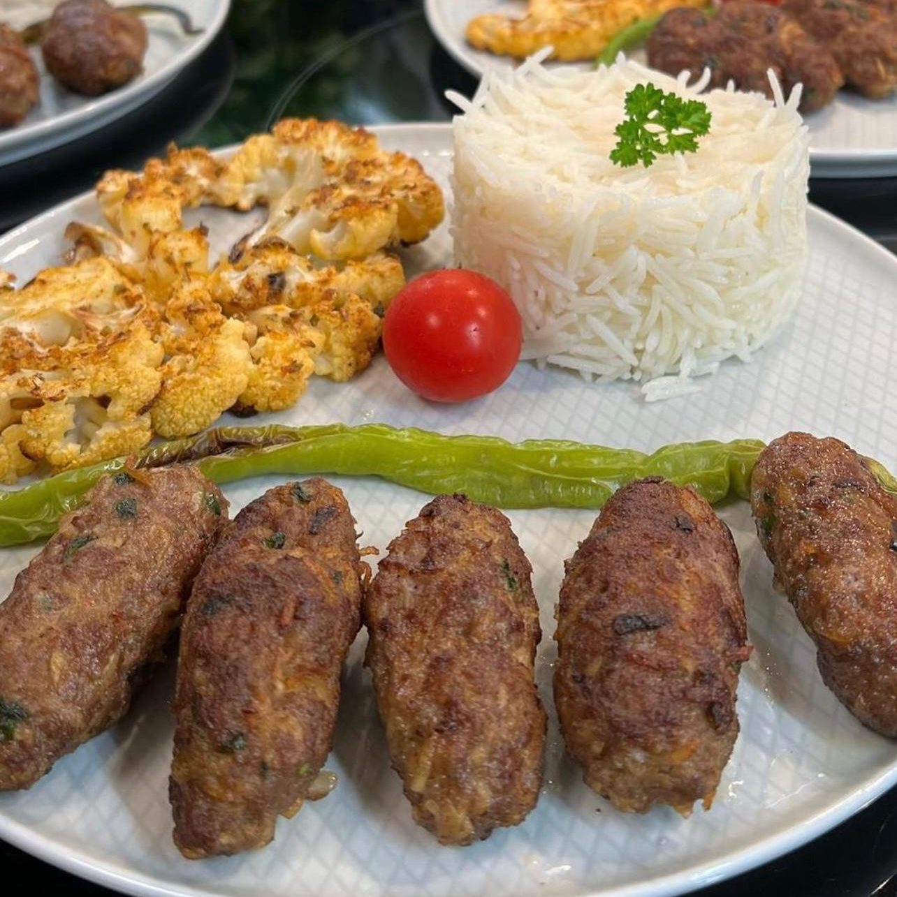 meatballs, rice and fried cauliflower